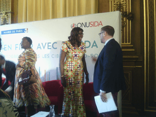 Christine Kafando, lors de la conférence de presse ONUSIDA à l’Hôtel de Ville de Paris