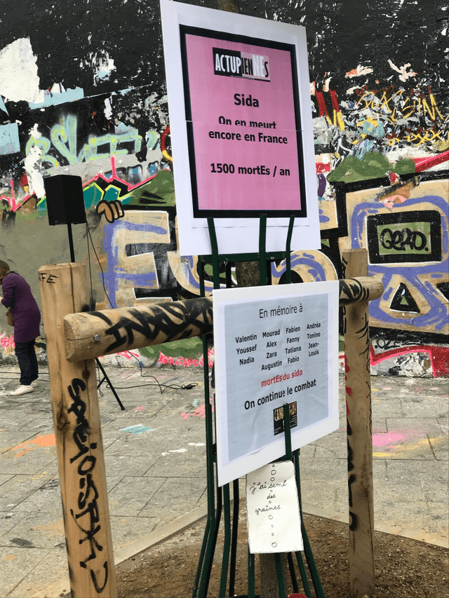On se réjouit de l’accès récent aux soins de conservation pour les personnes séropositives au VIH ou à une hépatite virale. Ceci est le fruit de bien des années de combat associatif. Il y a de nombreux autres champs où des droits sont à gagner. Nous en appelons ce soir à la création d’un centre d’archive LGBTI où le sida et ses morts sont bien présents. C’est un besoin important contre l’oubli et pour faire entendre à ces jeunes générations LGBTI l’importance de prendre soins de sa santé, dans un contexte où elles ne se sentent pas concernées par le virus.
