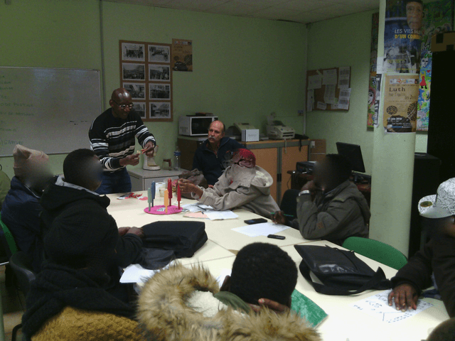 Sandra : Avec un membre de l’association, Gustave, nous sommes partis à la FTCR, qui est la fédération des tunisiens pour une citoyenneté des deux rives. Ils avaient envie de faire une action de prévention auprès des personnes migrantes qui viennent du Soudan, car ils ont une communauté du Soudan qui viennent. Et ils se sont dit c’est important de parler du VIH, donc ce sont des personnes qui sont en train d’apprendre le français. Donc la FTCR donne aussi des cours de français. Et donc, Gustave parlait et il y avait Mohamed, qui fait partie de la FTCR, qui traduisait en arabe. C’était vraiment très bien, très intéressant. On a même pu faire une démonstration de pose de préservatif. Il y en avait qui n’avaient jamais vu ça ou qui ne savaient pas comment ça s’utilisait. Il y en a qui pensait qu’il fallait mettre 2 préservatifs pour que ça fonctionne bien. Donc c’était vraiment très intéressant. Et donc à la fin de l’intervention, j’ai interviewé trois personnes pour savoir qu’est-ce qu’elles ont pensé de l’intervention de Gustave, qu’est-ce qu’elles avaient appris. Et bah je vous propose de l’écouter.