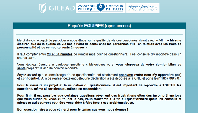 Nous vous proposons de participer à une étude en ligne visant à analyser la prise en charge médicale et sociale des patients séropositifs au VIH. Votre participation permettra de mieux comprendre les relations entre personnalité, éléments de précarité et la perception qu’ont les patients de leur qualité de vie.