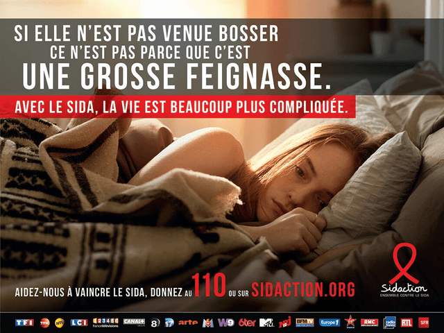 Lydia : VIH je connais parce que j’avais un ami qui en était atteint. Donc ça fait très longtemps que je suis ça et d’autre part, s’agissant des spots, je ne suis pas tout à fait d’accord. Même pas du tout parce que quand ça fini par “la vie c’est plus compliquée”, avec un cancer la vie c’est plus compliqué aussi. Donc je pense que la formulation n’est pas très bonne, pas très judicieuse. Globalement, les spots ne me plaisent pas.